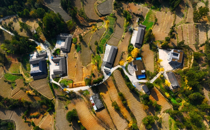近日,彩葉林環抱著黔江區鵝池鎮社溪村的民居和整理好的百合種植地(無人機照片)。黔江區鵝池鎮社溪村是土家族集聚院落,坐落于大山中,這里至今保留著土家族傳統的建筑、民俗和勞動、生活方式。初冬時節,山間五彩斑斕的彩葉林環抱著社溪村的民居、公路、茶園和剛整理好準備種植百合的土地,勾勒出一幅冬日山村的生態畫卷,美不勝收。