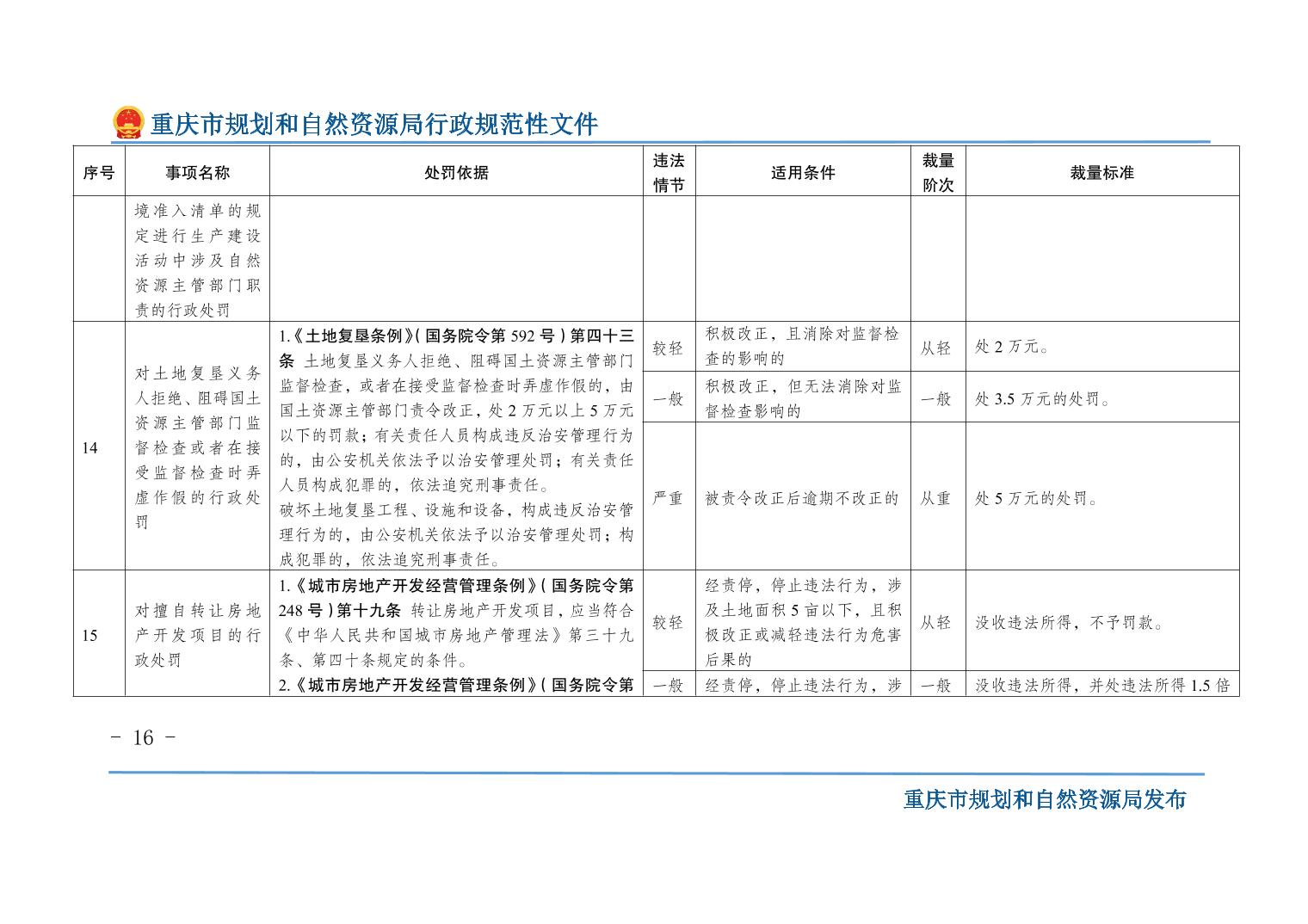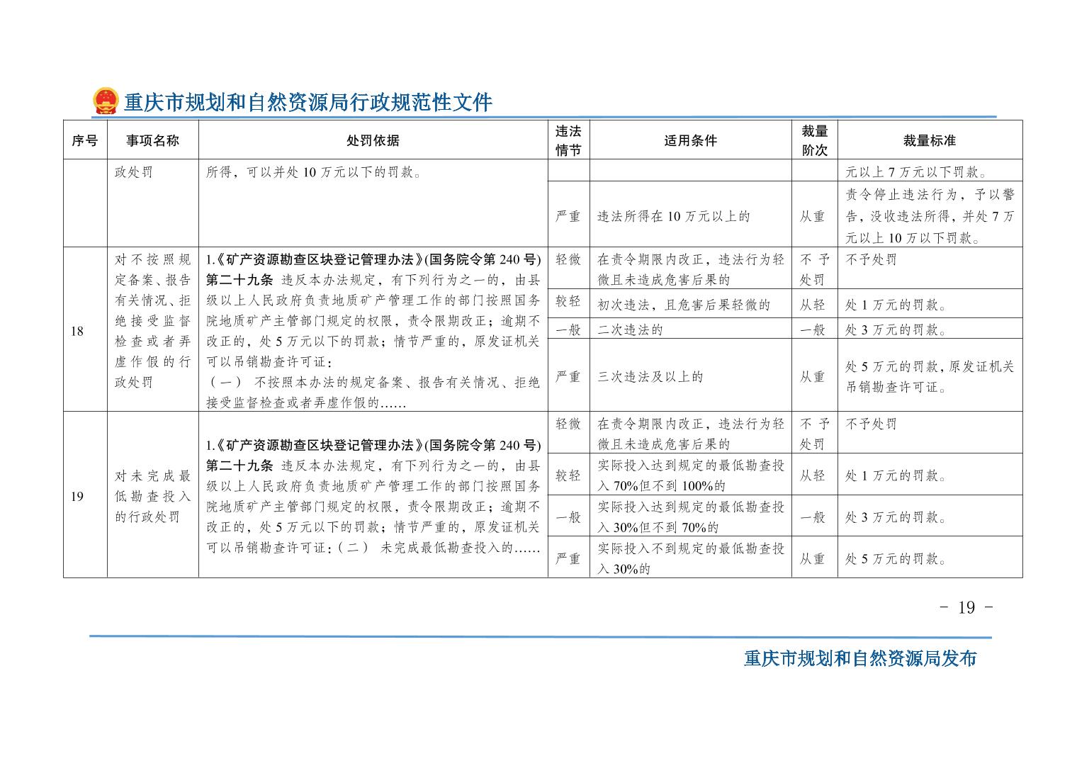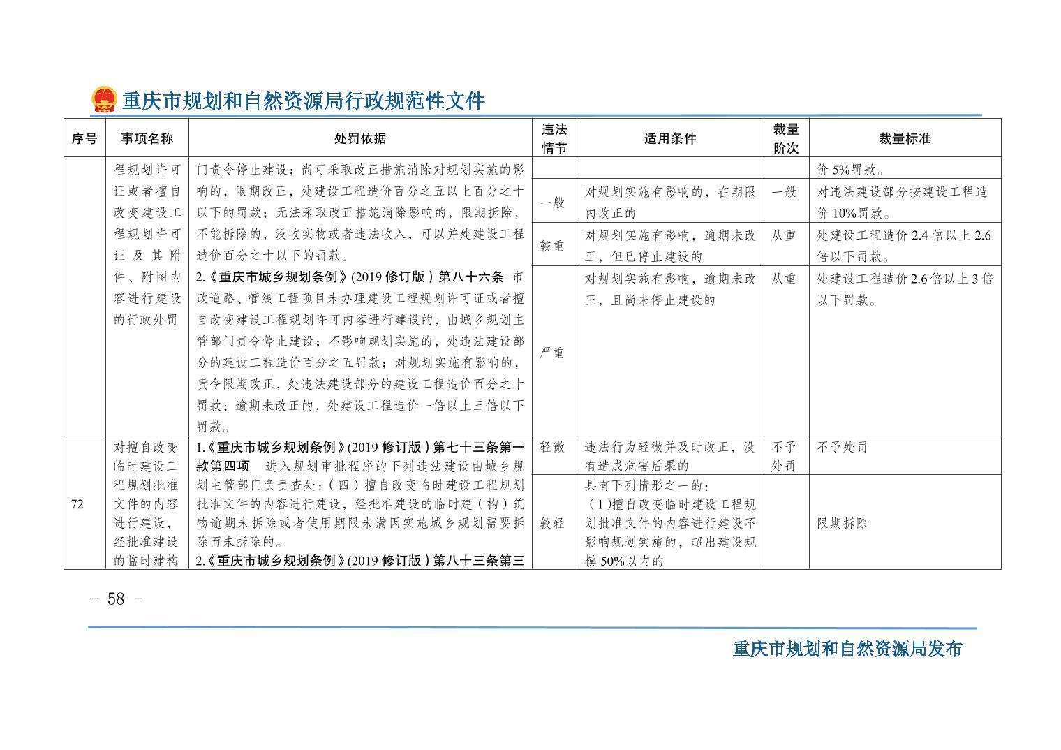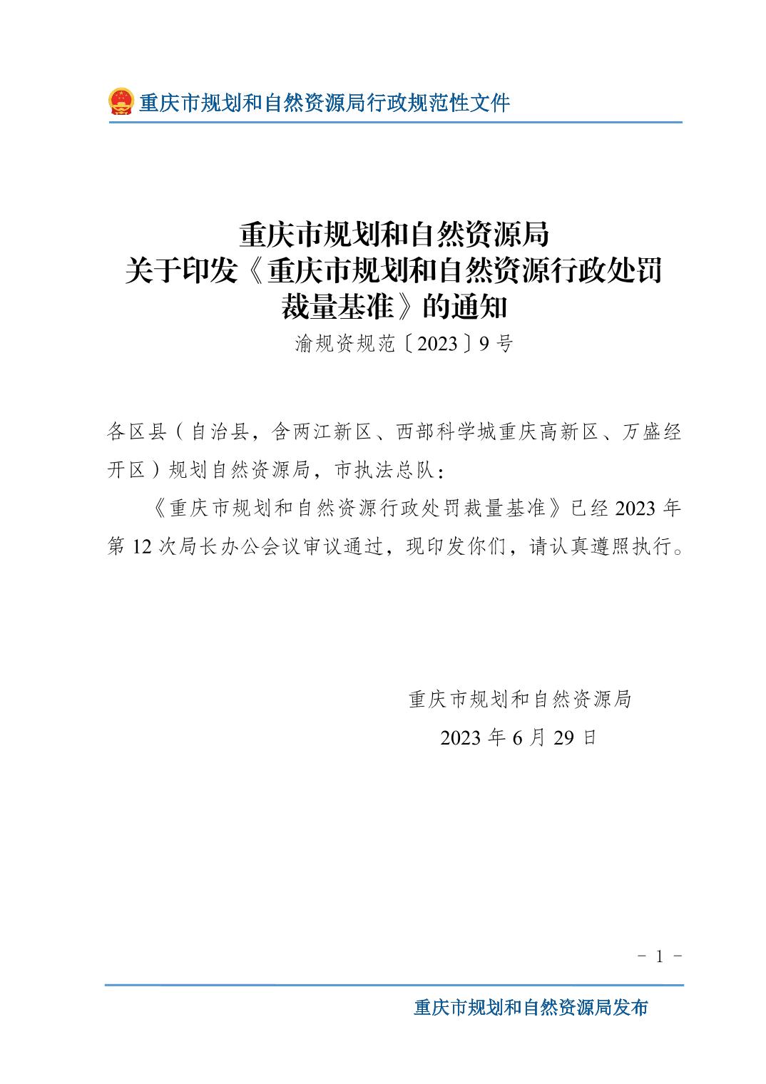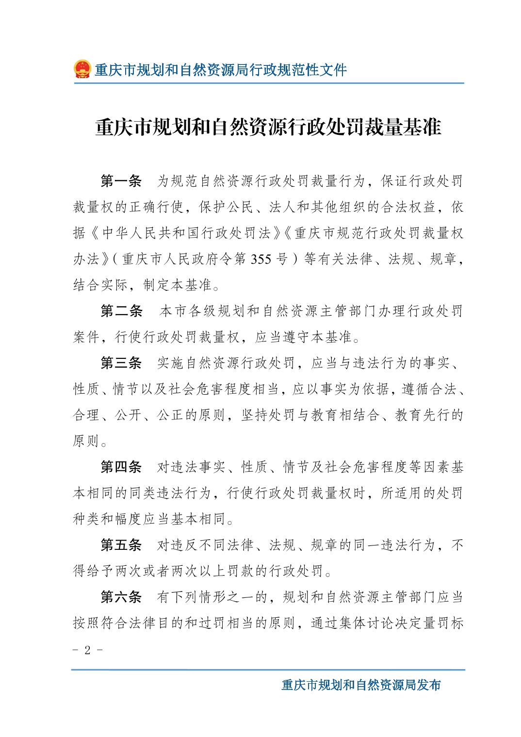 重慶市規(guī)劃和自然資源局關(guān)于印發(fā)《重慶市規(guī)劃和自然資源行政處罰裁量基準(zhǔn)》的通知