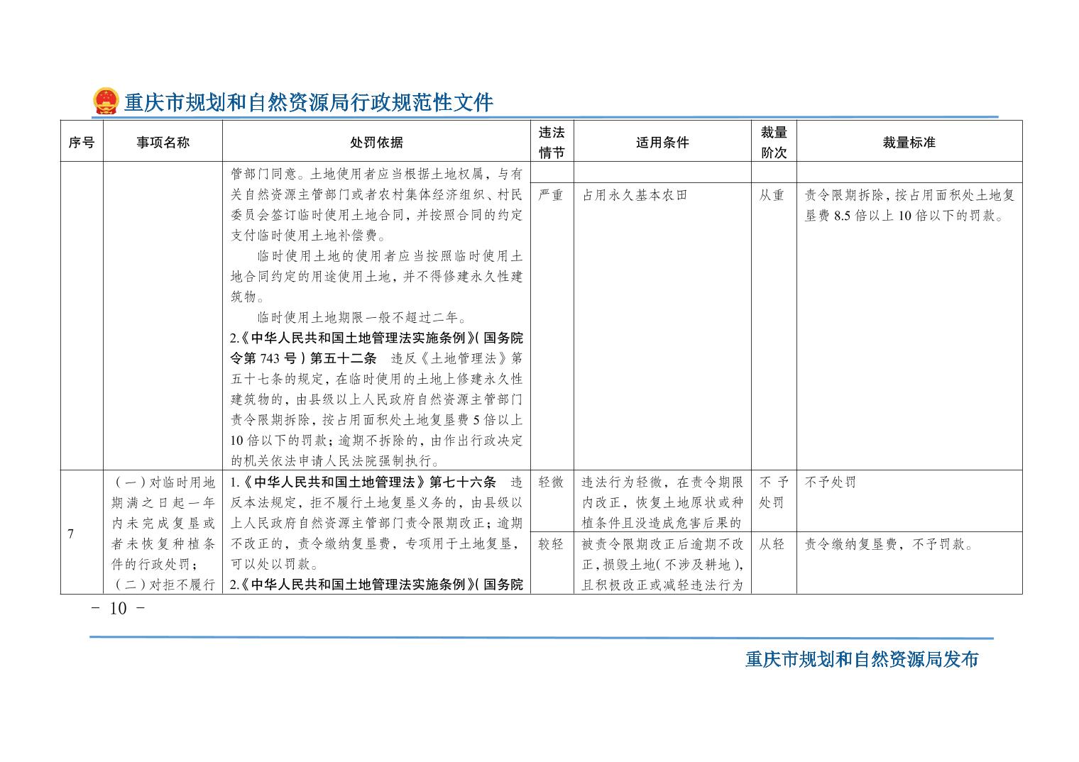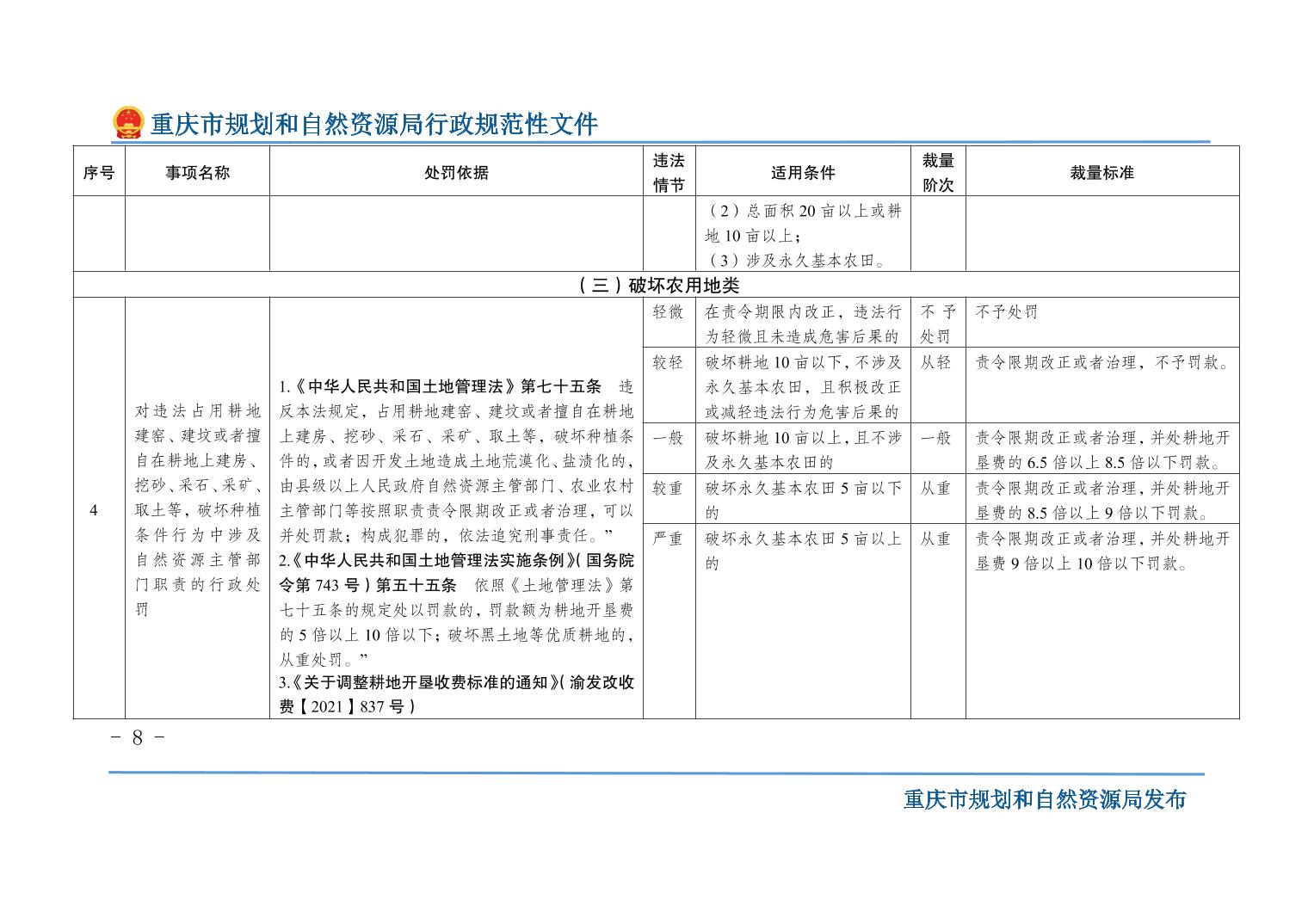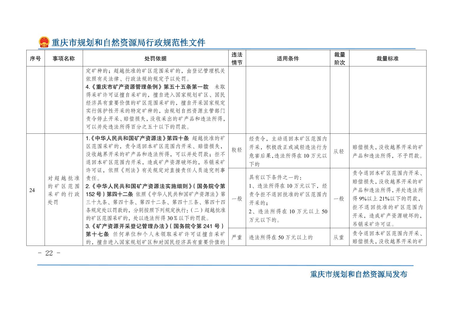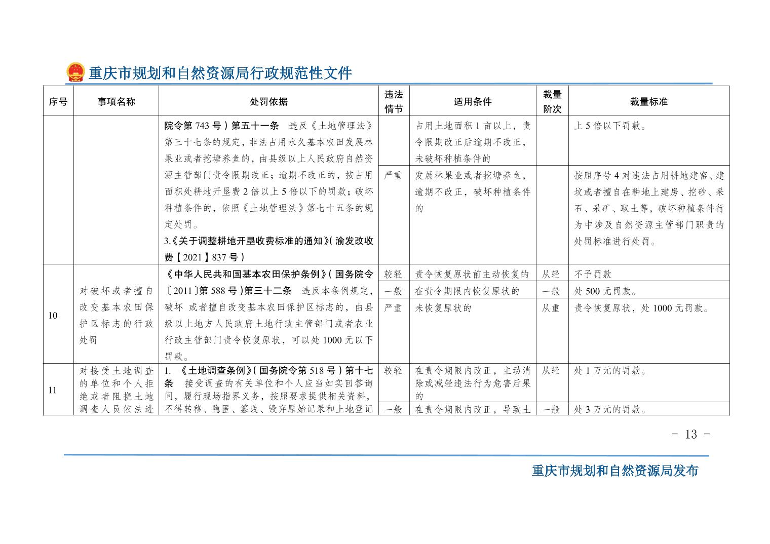 重慶市規(guī)劃和自然資源局關(guān)于印發(fā)《重慶市規(guī)劃和自然資源行政處罰裁量基準(zhǔn)》的通知