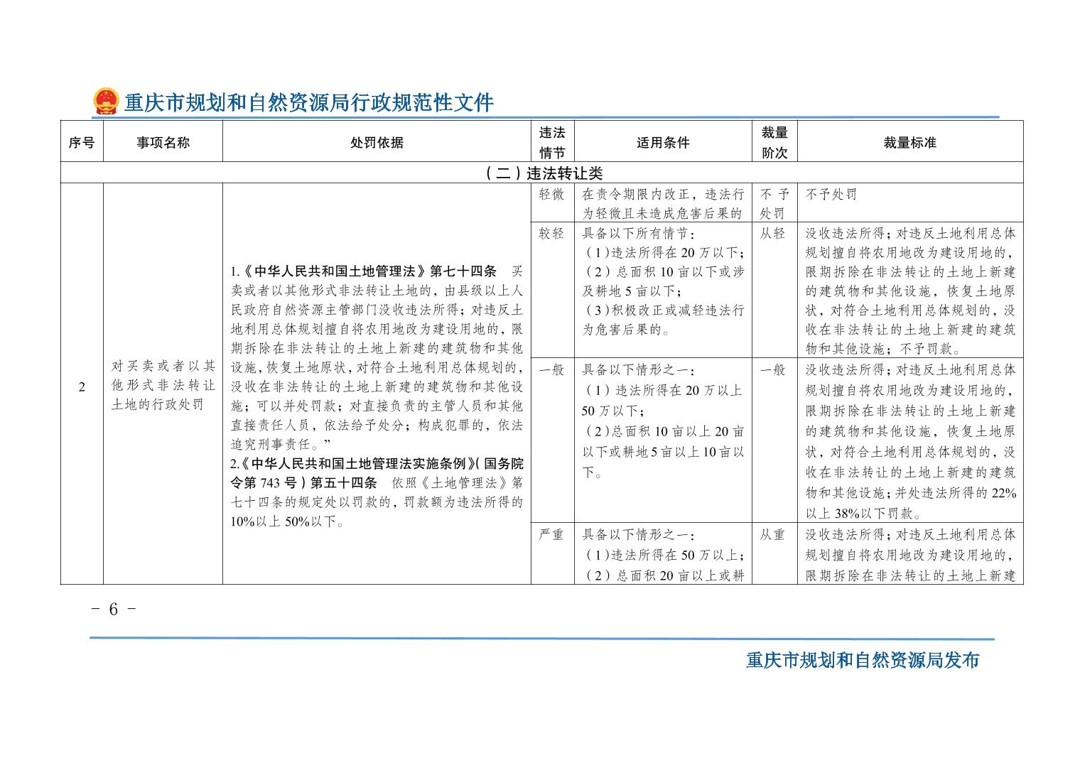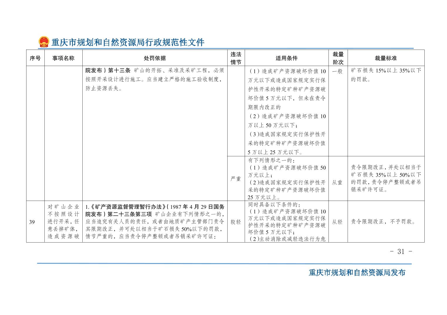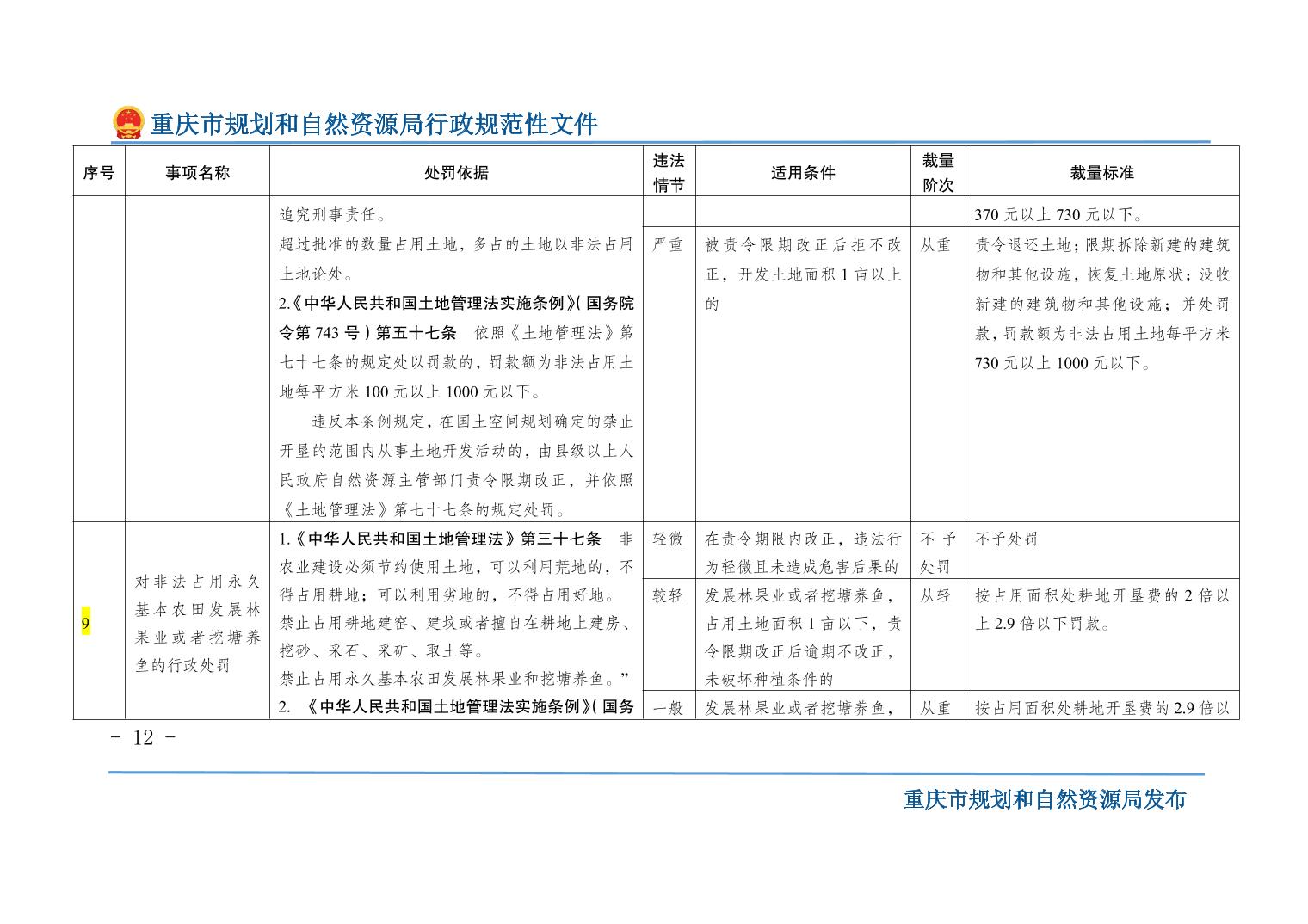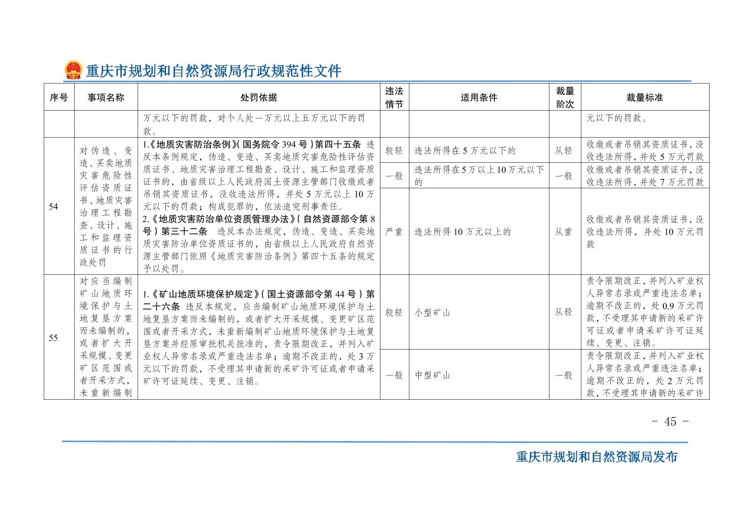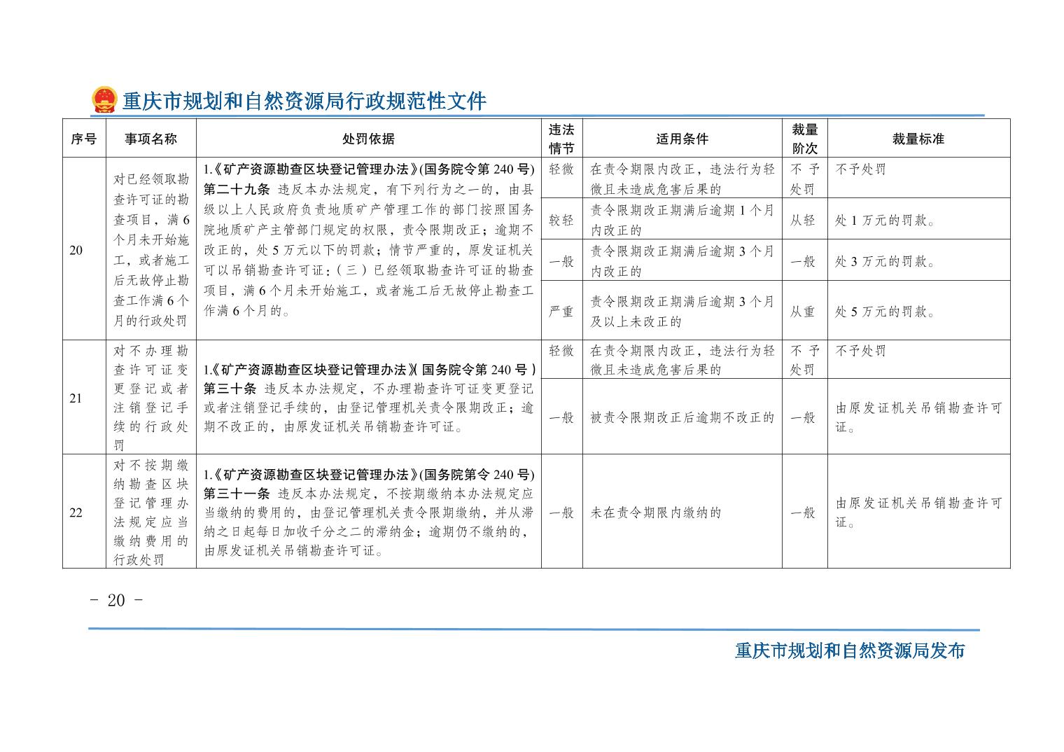 重慶市規(guī)劃和自然資源局關(guān)于印發(fā)《重慶市規(guī)劃和自然資源行政處罰裁量基準(zhǔn)》的通知