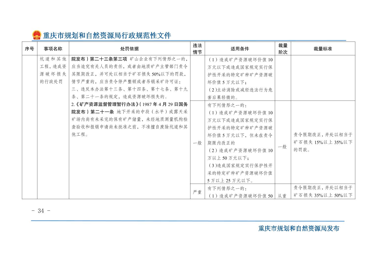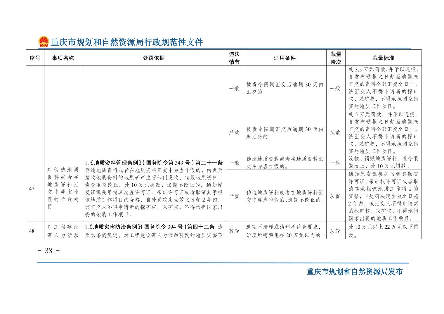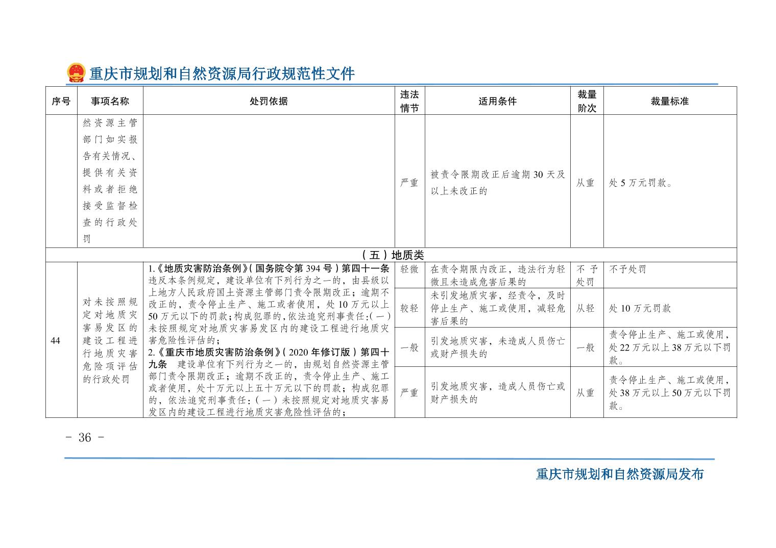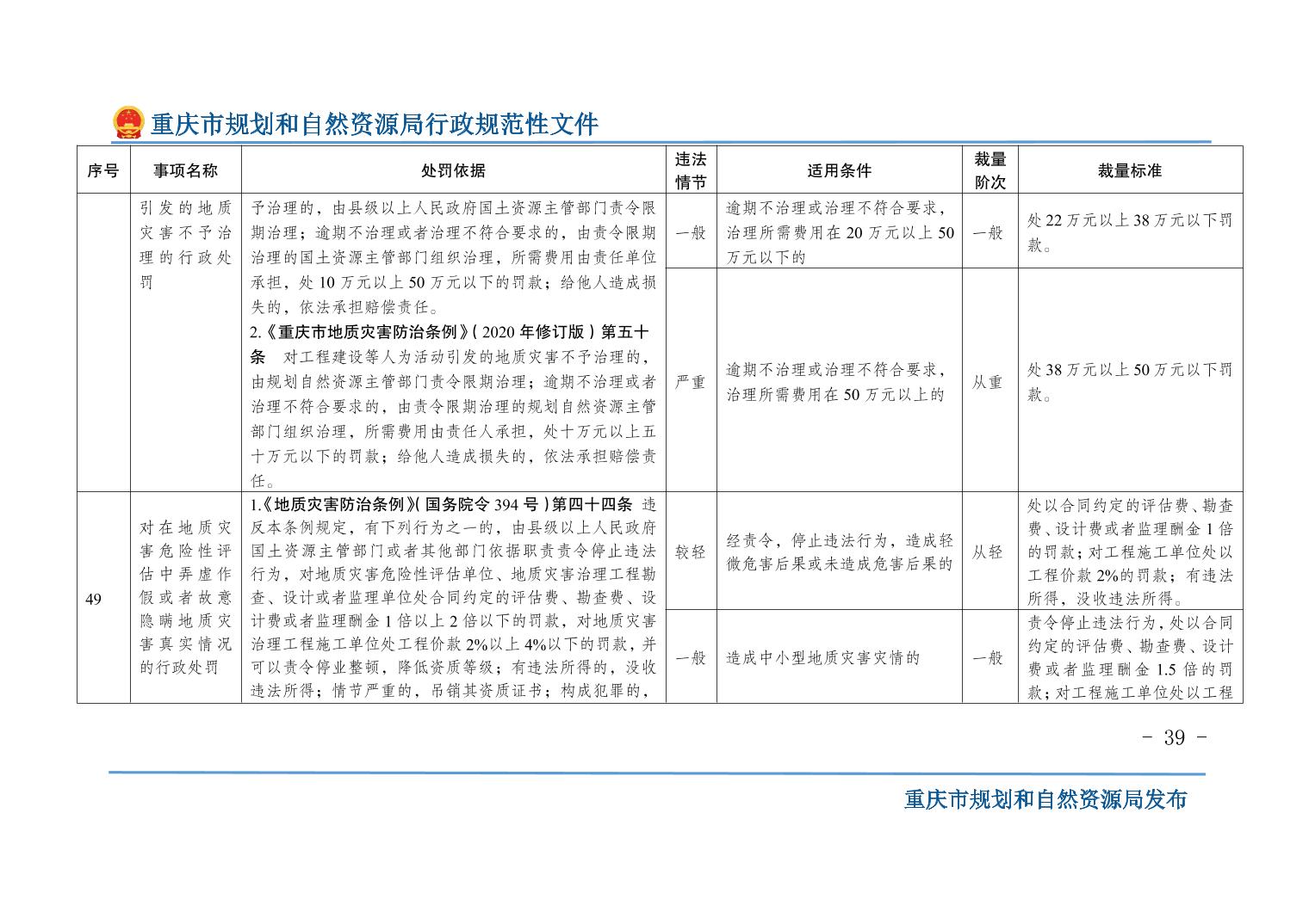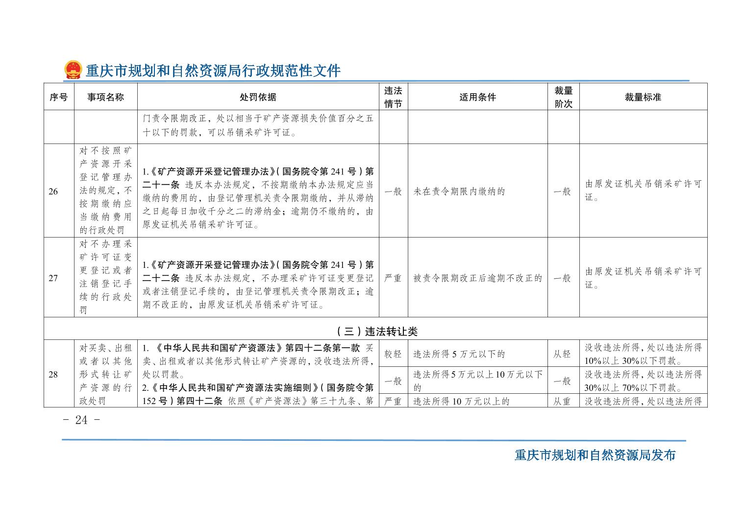 重慶市規(guī)劃和自然資源局關(guān)于印發(fā)《重慶市規(guī)劃和自然資源行政處罰裁量基準(zhǔn)》的通知