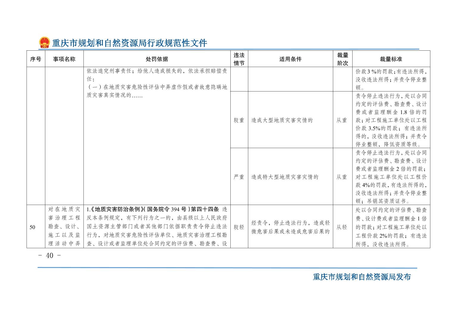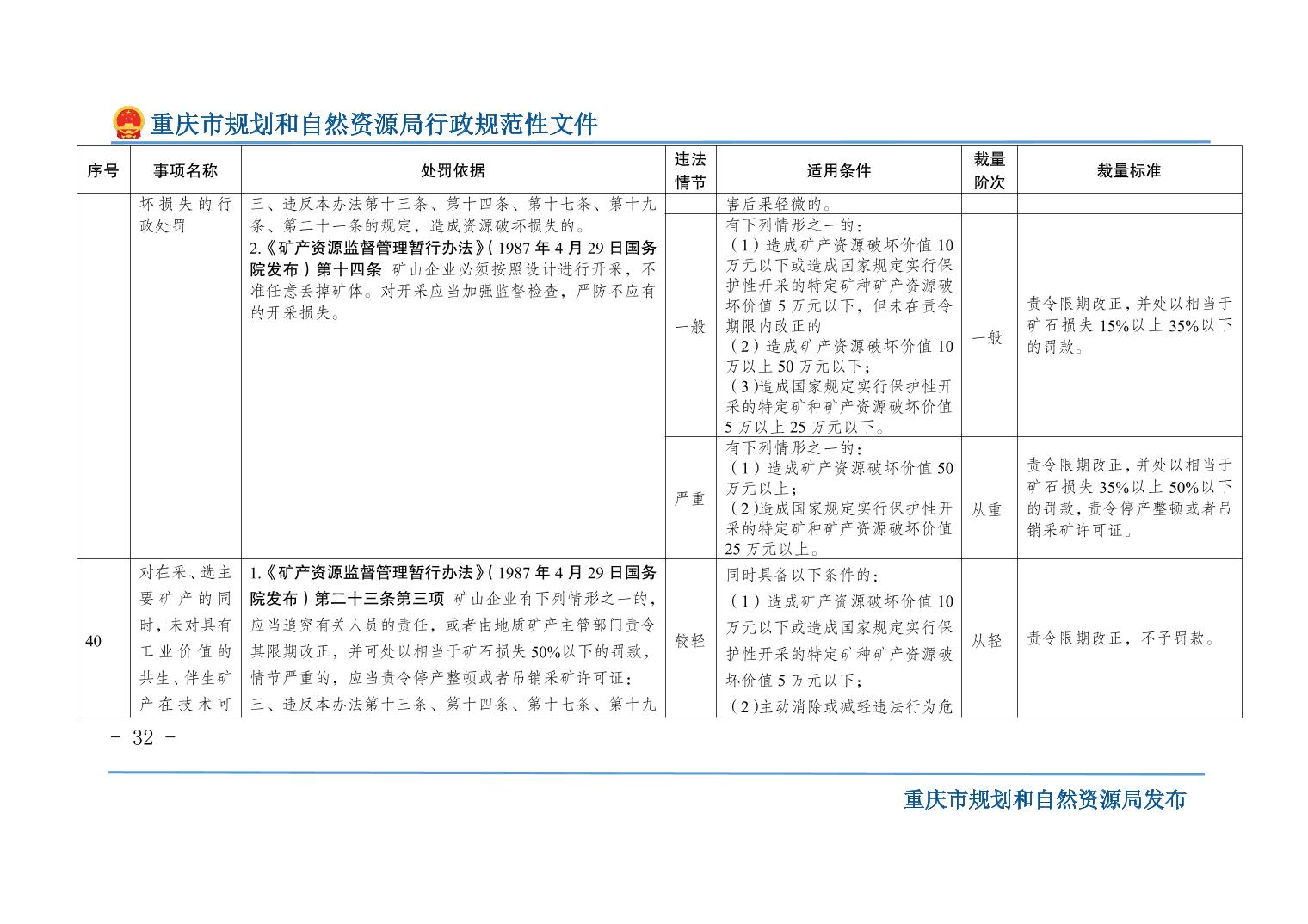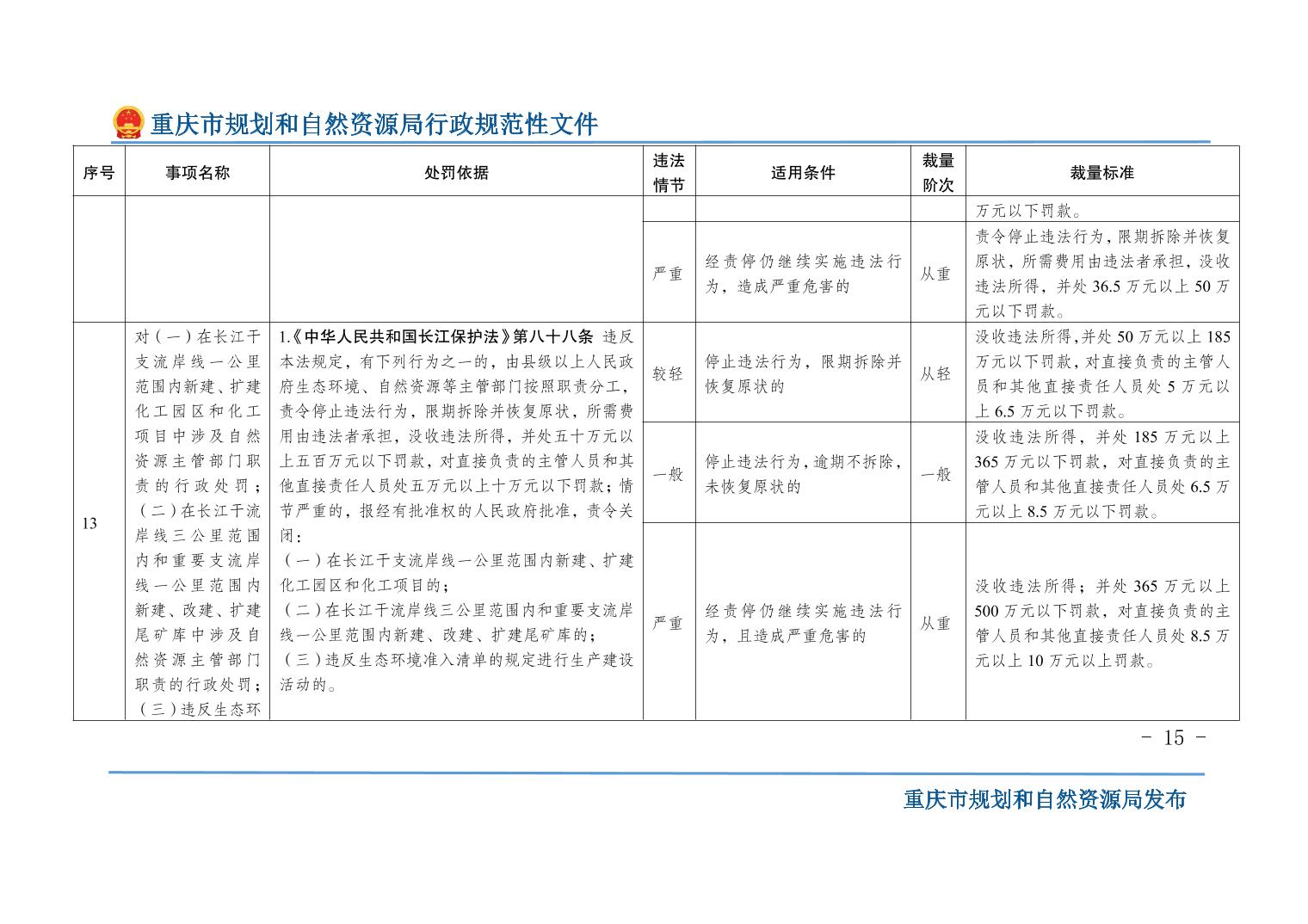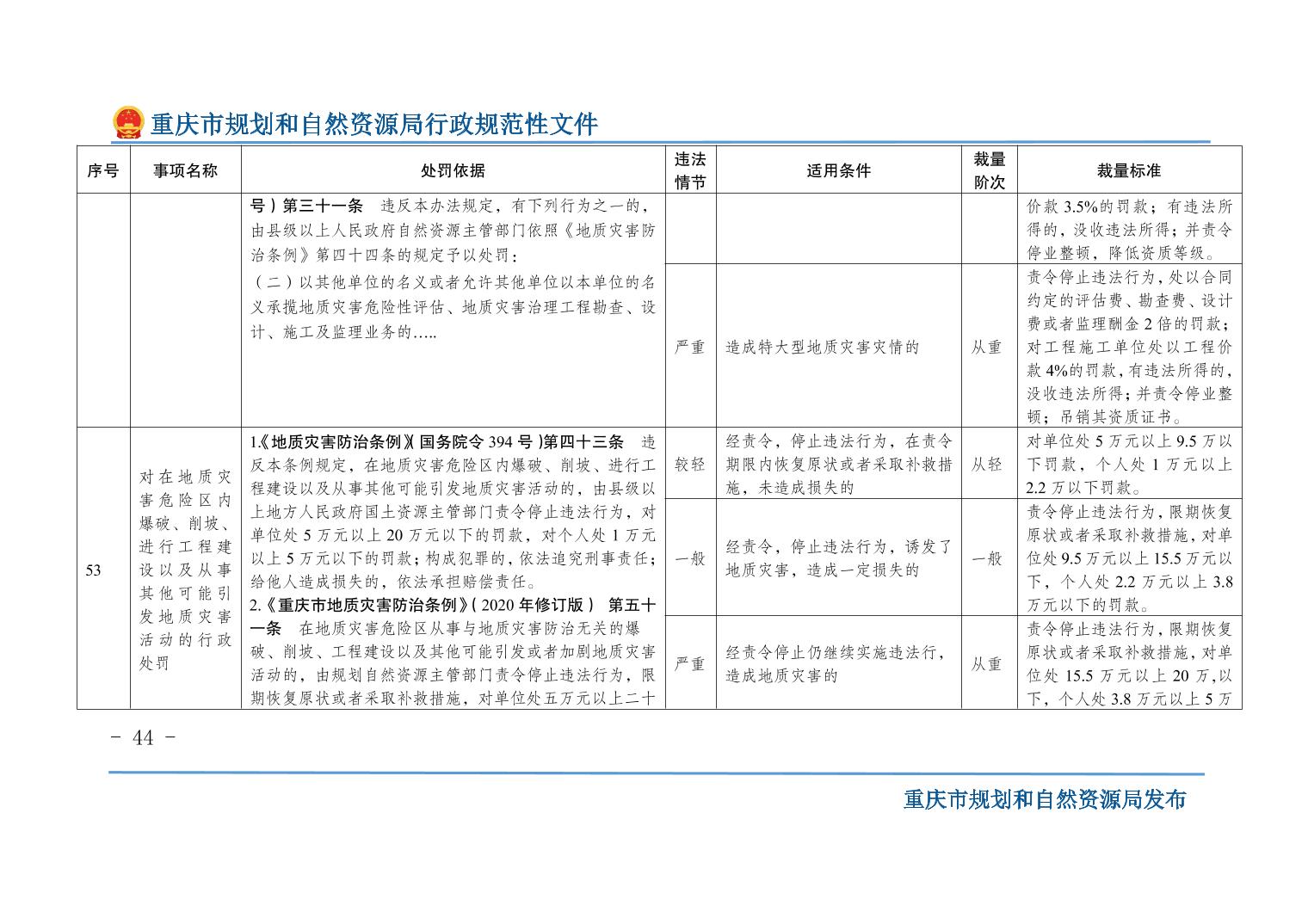 重慶市規(guī)劃和自然資源局關(guān)于印發(fā)《重慶市規(guī)劃和自然資源行政處罰裁量基準(zhǔn)》的通知