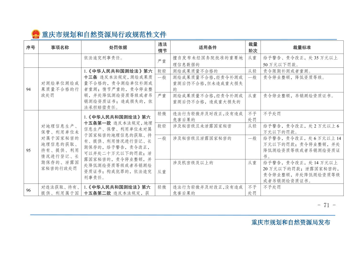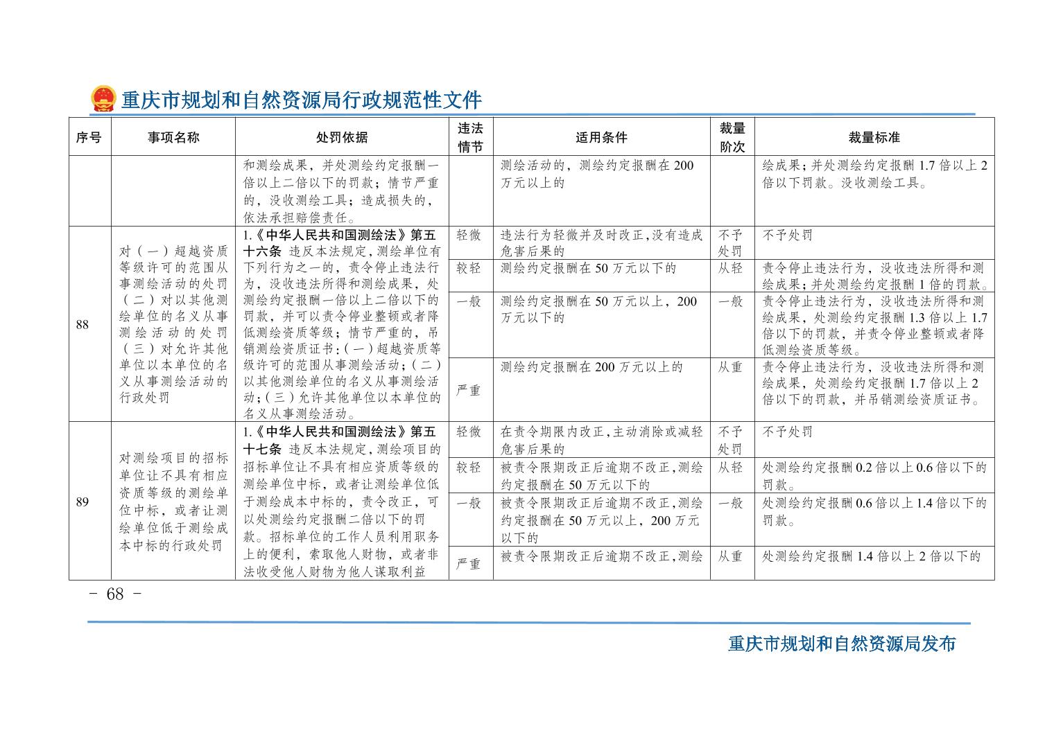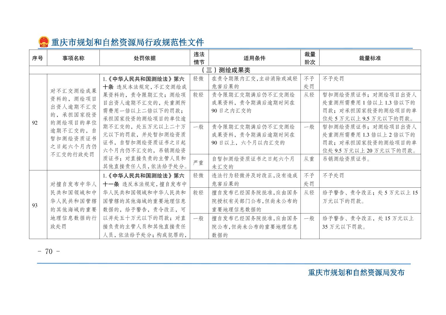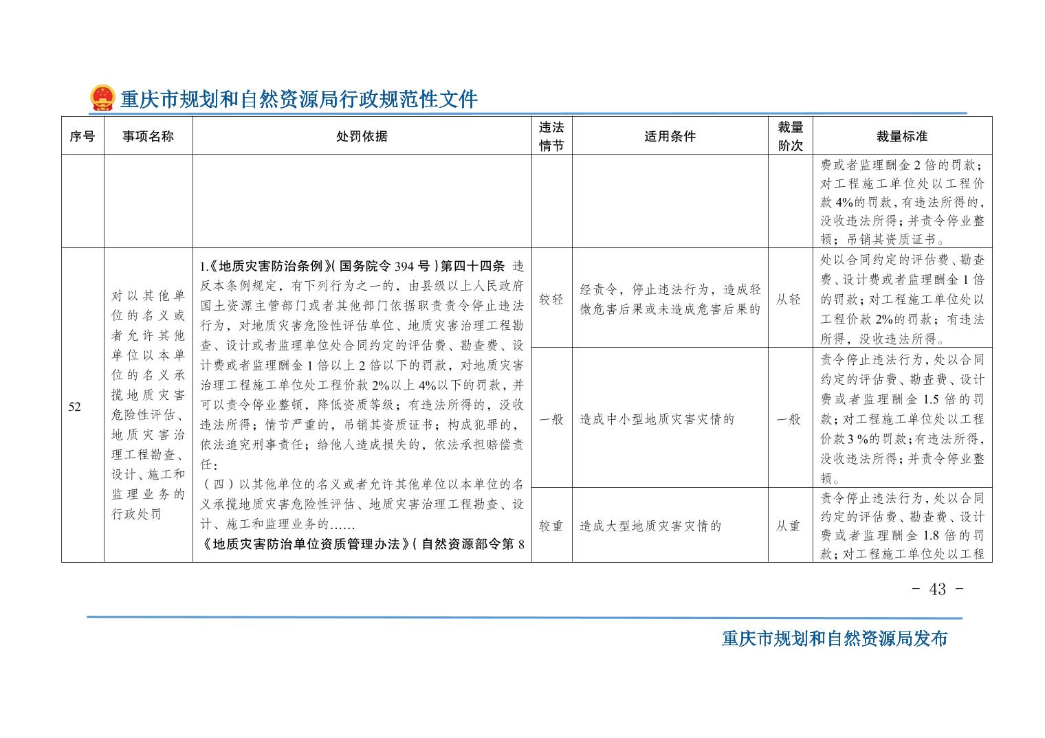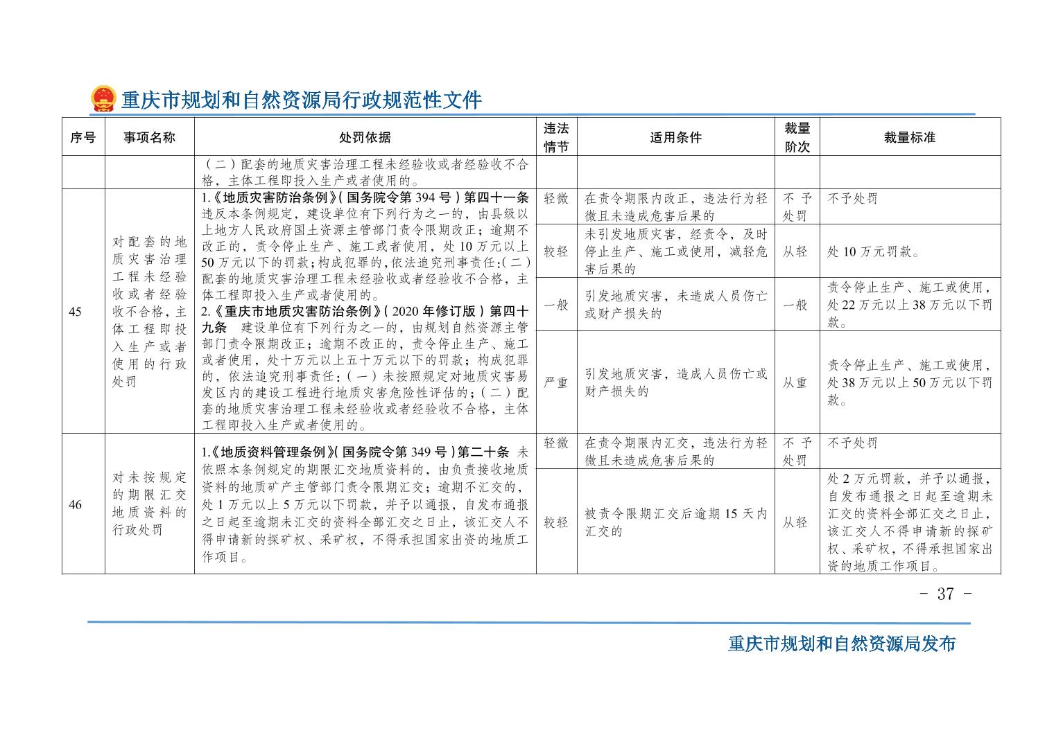 重慶市規(guī)劃和自然資源局關(guān)于印發(fā)《重慶市規(guī)劃和自然資源行政處罰裁量基準(zhǔn)》的通知