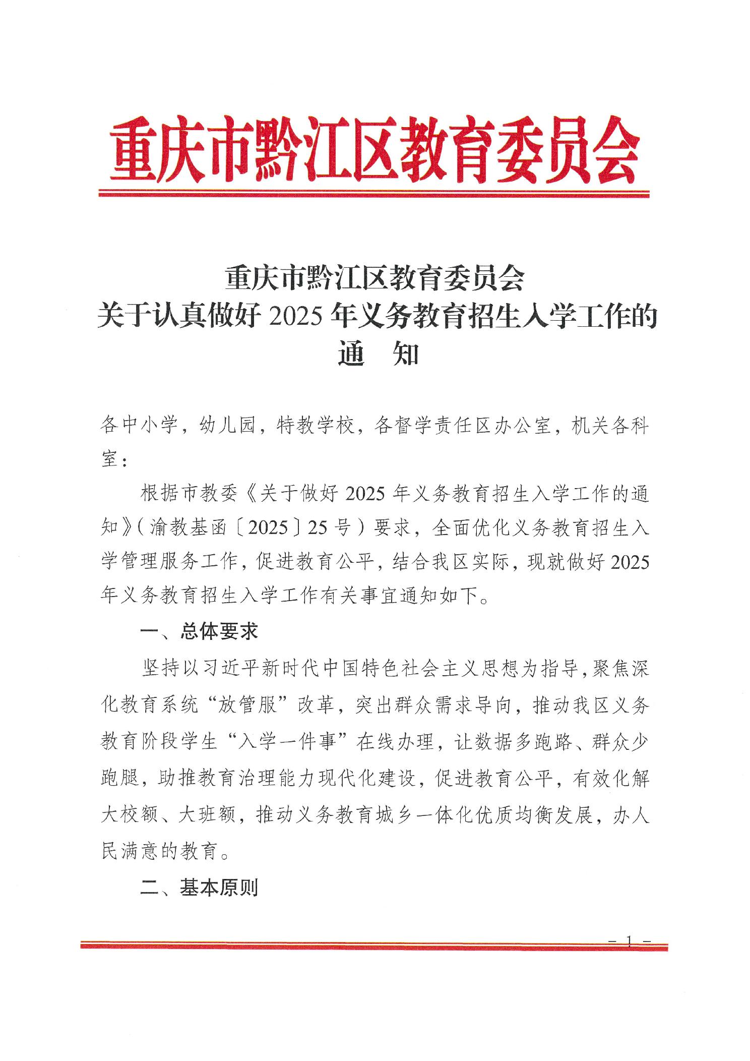 重慶市黔江區(qū)教育委員會(huì)關(guān)于認(rèn)真做好2025年義務(wù)教育招生入學(xué)工作的通知