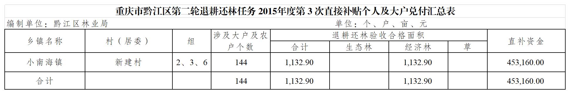 重慶市黔江區(qū)林業(yè)局2025年第二輪退耕還林10月直補資金兌付情況公示(小南海鎮(zhèn)新建村)