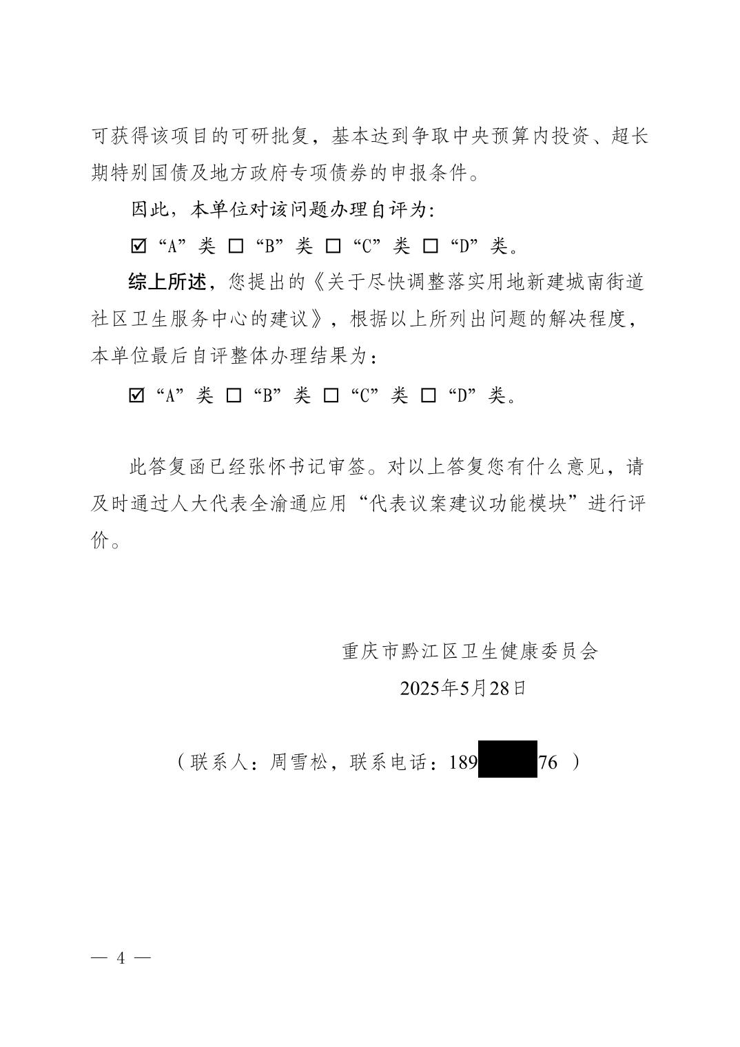 重慶市黔江區(qū)衛(wèi)生健康委員會關(guān)于黔江區(qū)五屆人大六次會議第014號建議辦理情況的答復(fù)函
