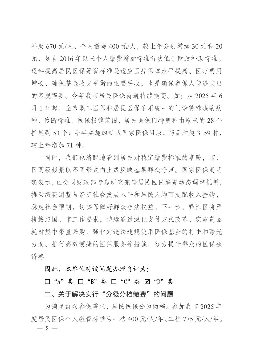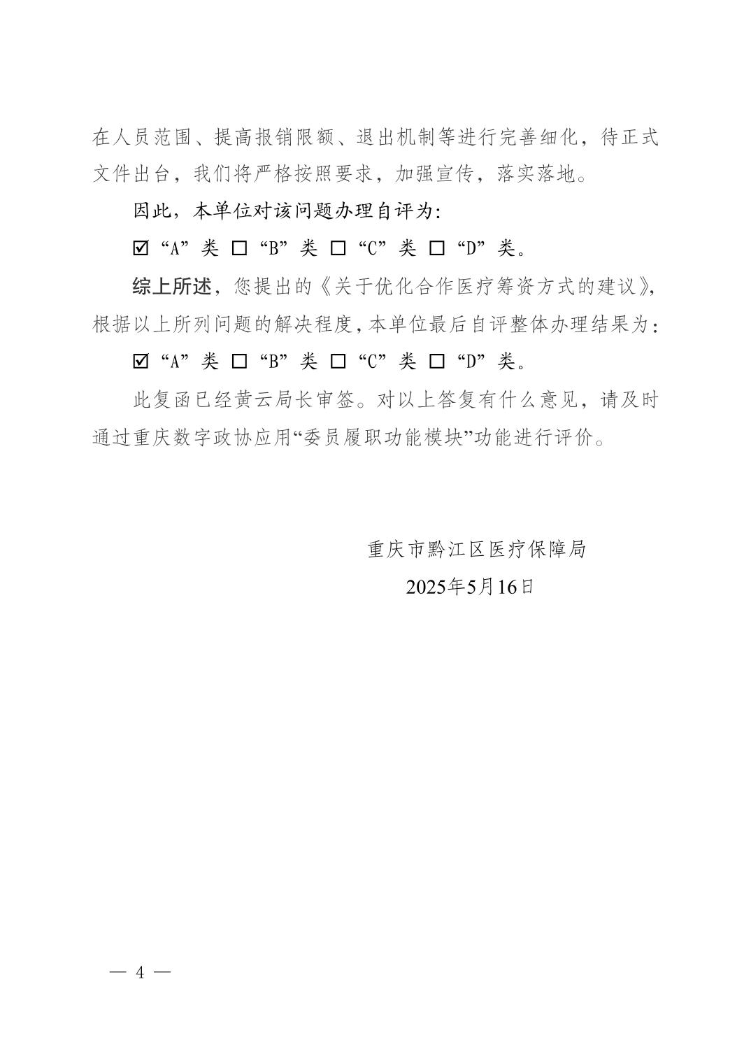 重慶市黔江區醫療保障局關于黔江區政協五屆四次會議提案第238號辦理情況的答復函