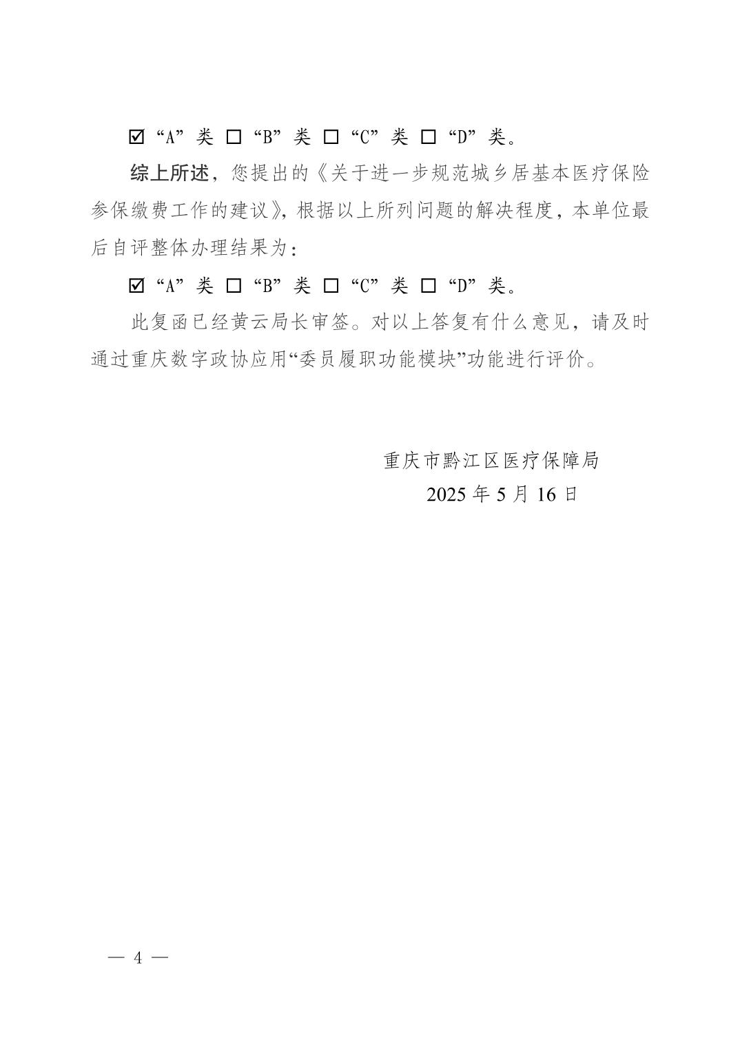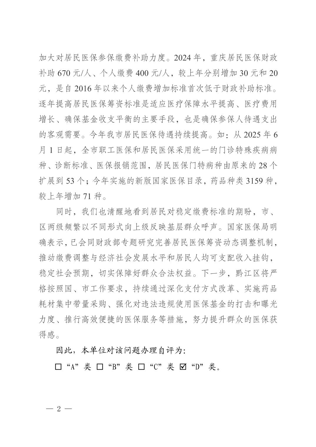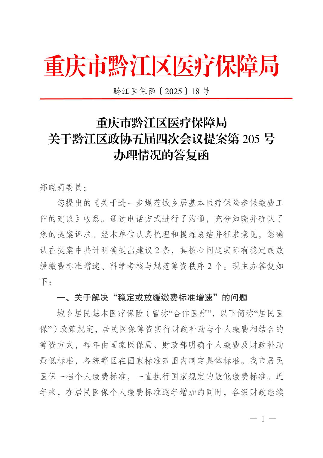 重慶市黔江區(qū)醫(yī)療保障局關(guān)于黔江區(qū)政協(xié)五屆四次會(huì)議提案第205號(hào)辦理情況的答復(fù)函