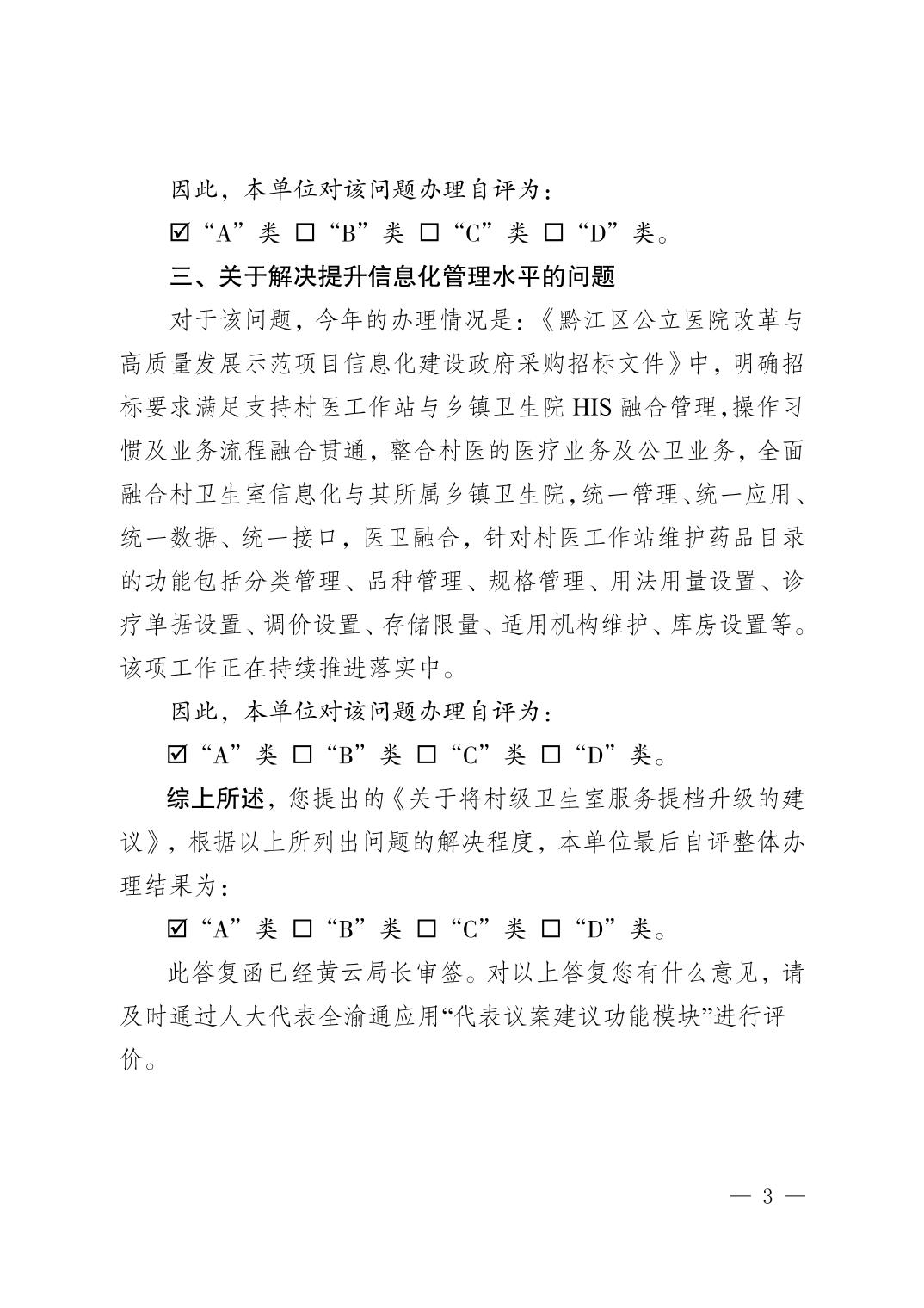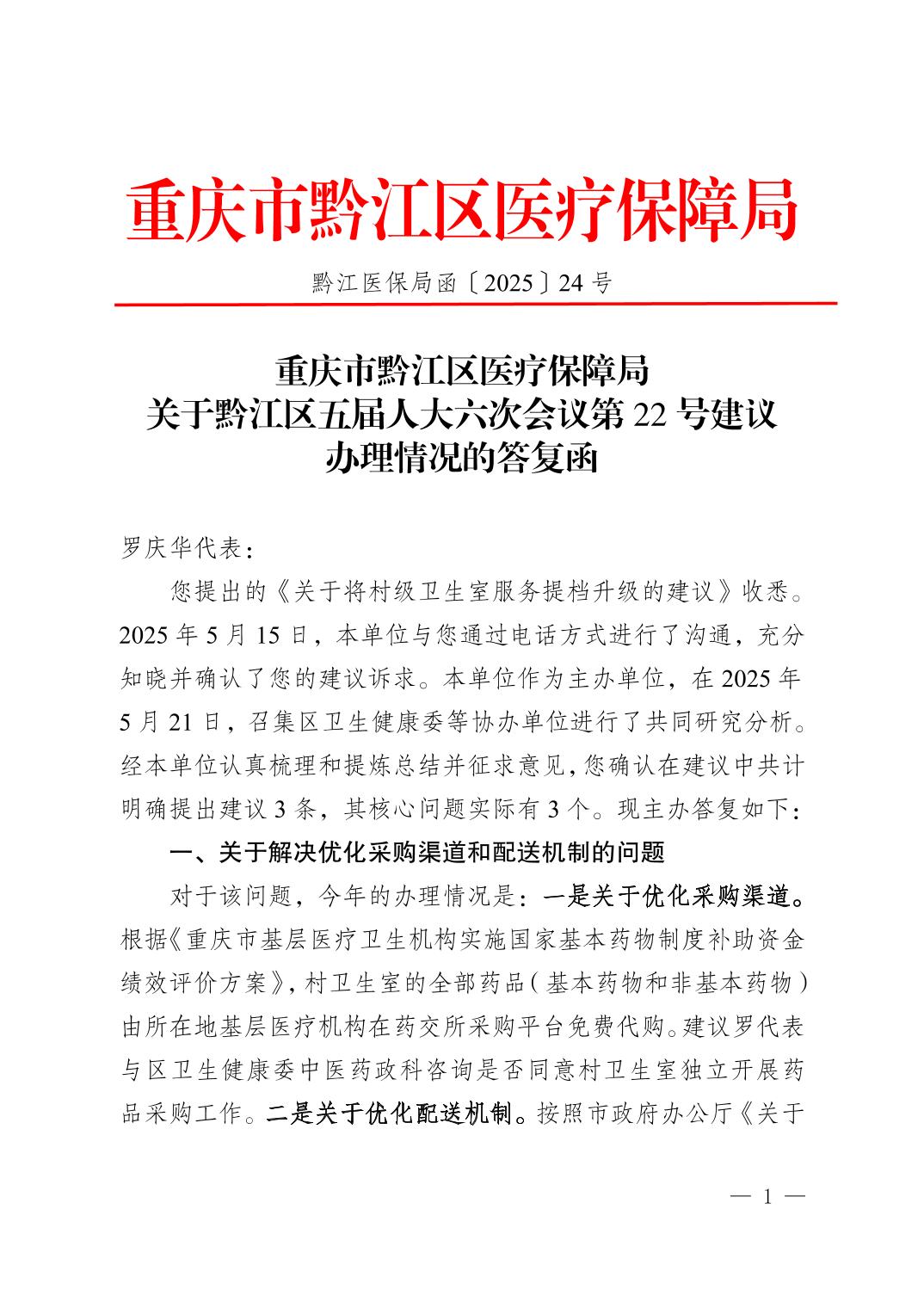 重慶市黔江區醫療保障局關于黔江區五屆人大六次會議第22號建議辦理情況的答復函