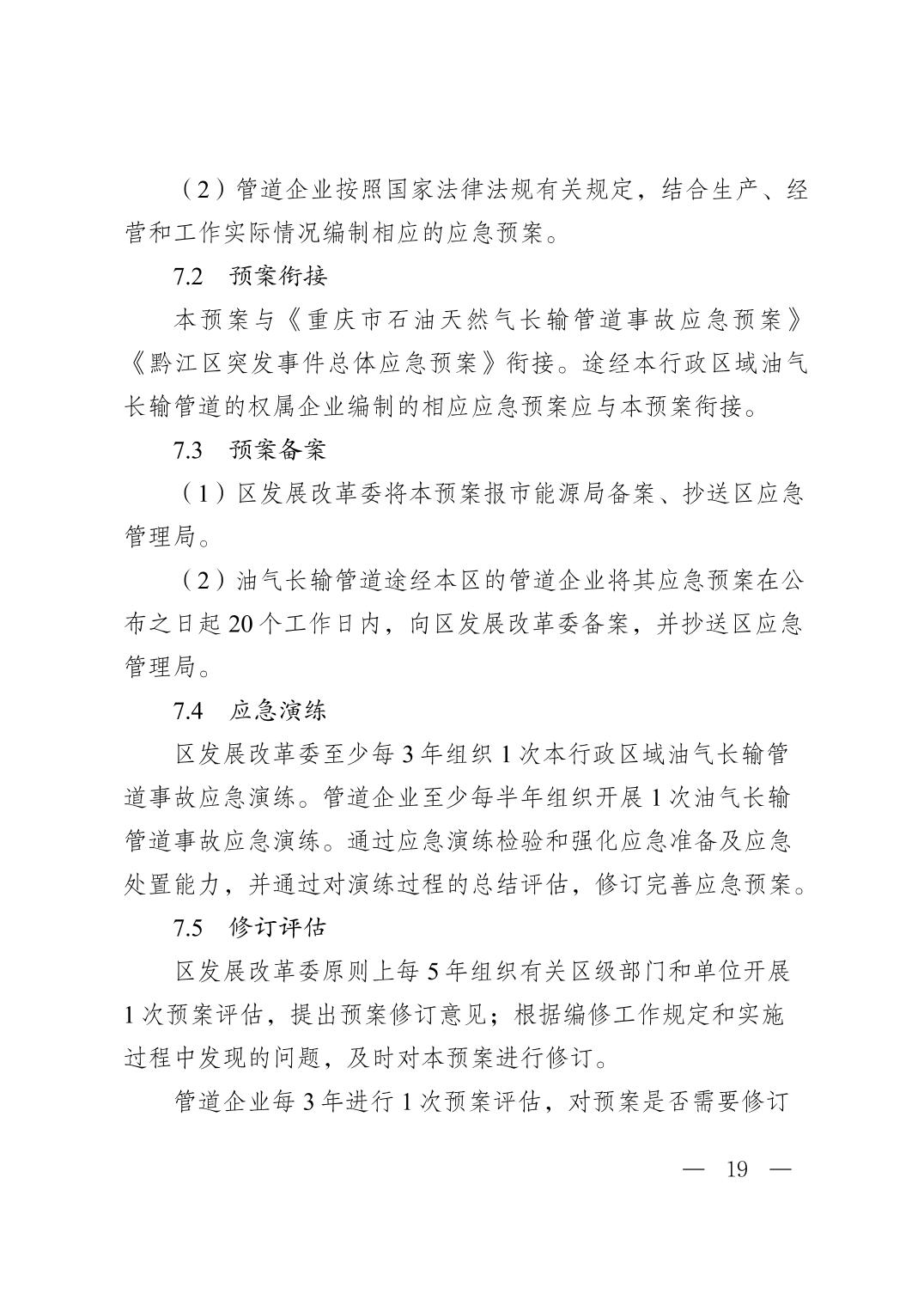 重慶市黔江區人民政府辦公室關于印發黔江區石油天然氣長輸管道事故 應急預案的通知