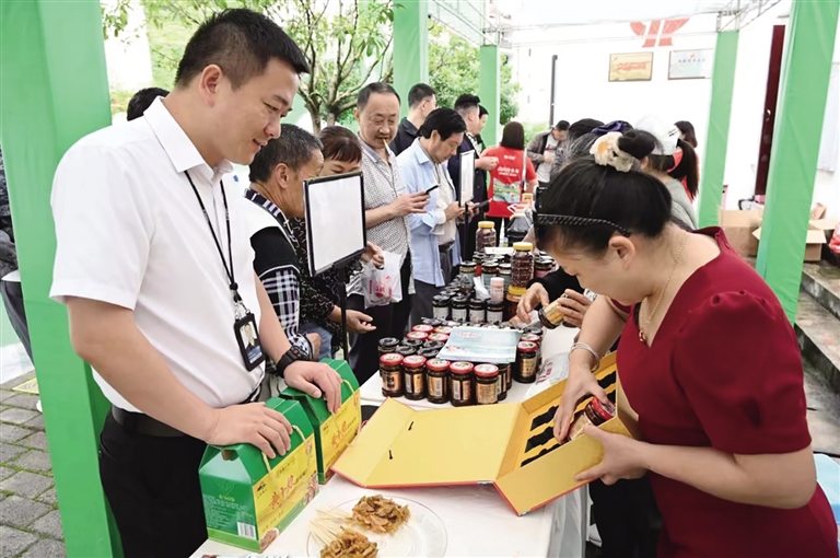 活動現(xiàn)場,來自區(qū)內(nèi)外的18家特色農(nóng)產(chǎn)品生產(chǎn)企業(yè)代表、農(nóng)村電商達(dá)人帶著各自的特色產(chǎn)品、食品進(jìn)行展示、試吃,吸引了眾多主播和市民咨詢、品嘗。在室內(nèi)直播基地,苗家郵小妹、蓬江食品、小楊叔叔、豆小雅、洋芋妹、春春等主播現(xiàn)場開直播,對區(qū)內(nèi)的農(nóng)產(chǎn)品進(jìn)行了帶貨推介。